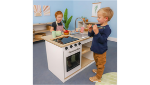 Little People’s Cove has expanded its selection of wooden play kitchen sets for children.
